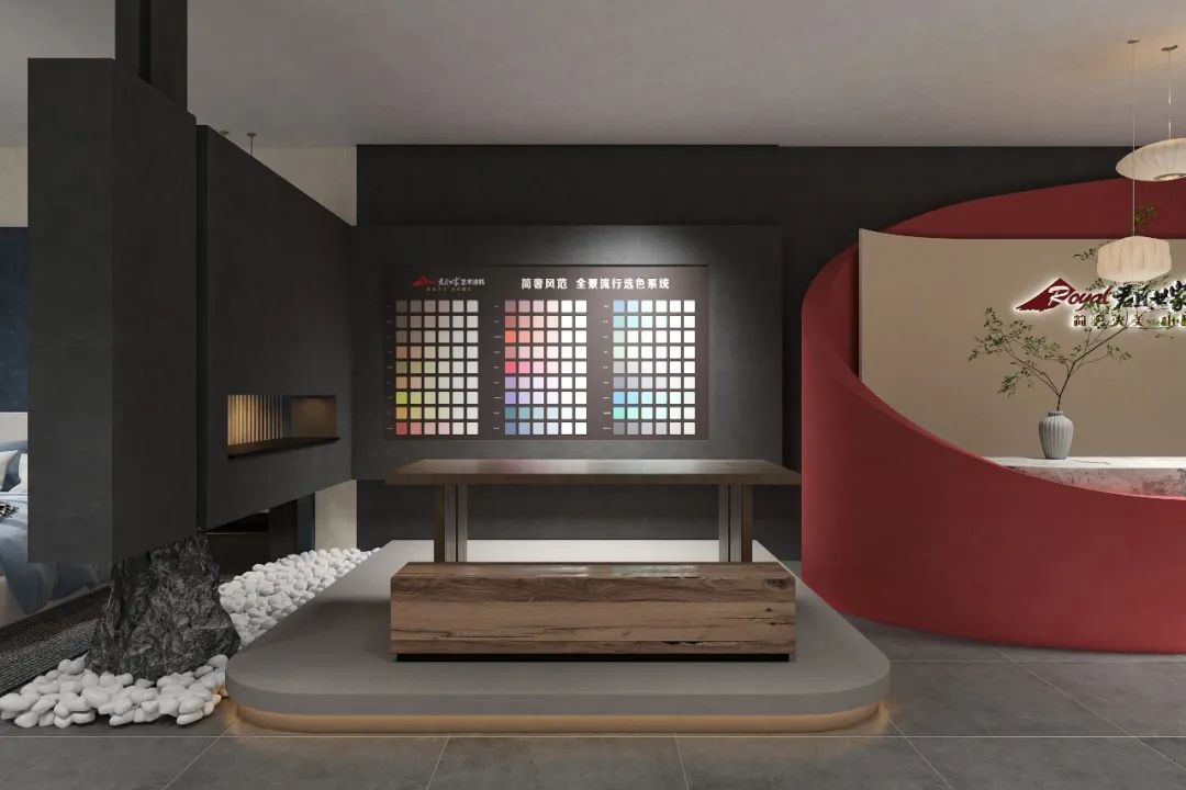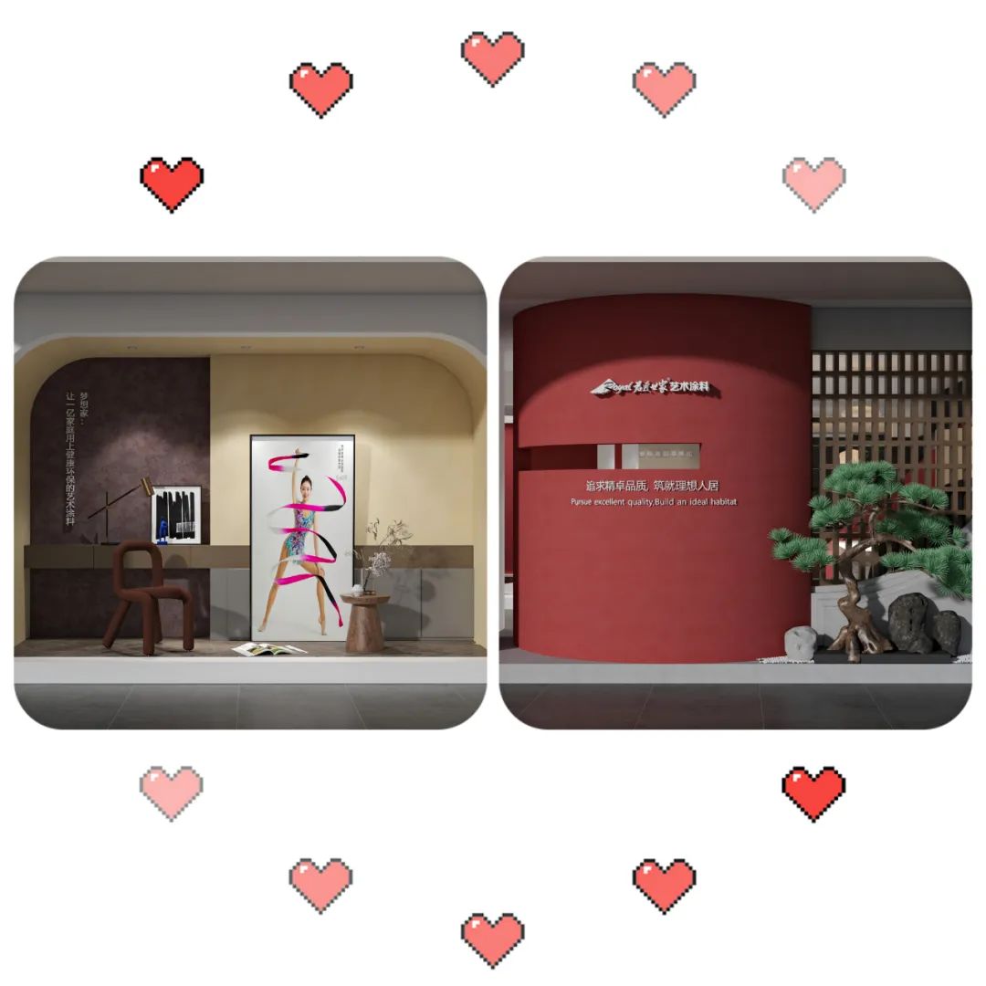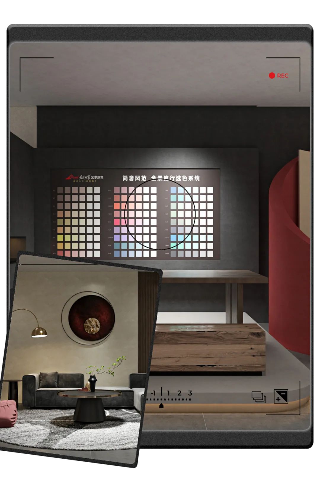 不同層次的色卡墻不僅起到了很好的裝飾效果,還完美地將品牌的藝術涂料質感直觀地展現(xiàn)在眼前。