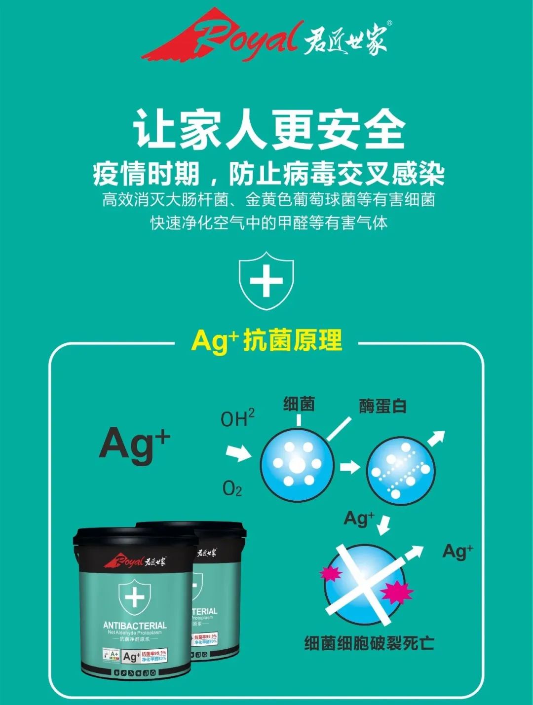 君匠世家藝術(shù)涂料基于長期的沉淀和專研,在成熟的工藝水平上再度提升和加強,研發(fā)出含有高濃度抗菌因子的原漿:將祛醛率提升至80%、抗菌率提升至99.9%,能夠高效消滅大腸桿菌、金黃色葡萄球菌等有害細菌,為疫情期的人們加持了“防護裝備”。