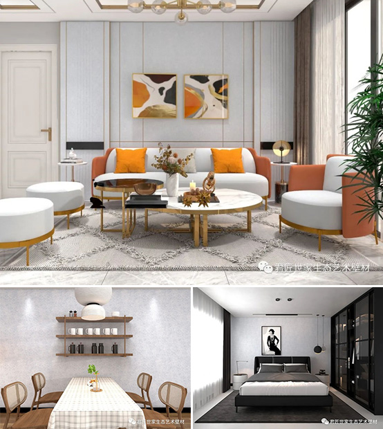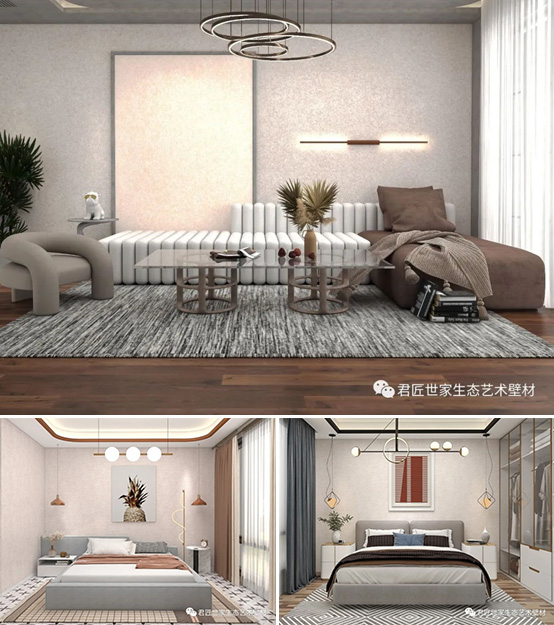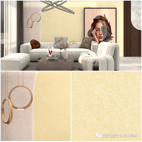 君匠世家藝術(shù)涂料——“巴洛克絲綢五代”特點(diǎn):耐水擦洗、防潮防霉、環(huán)保無污染等