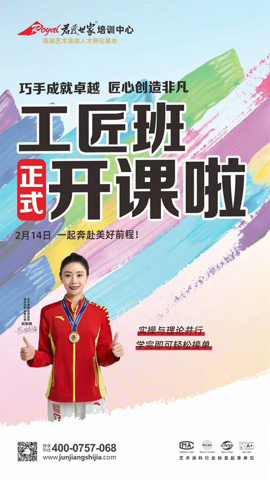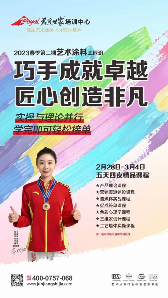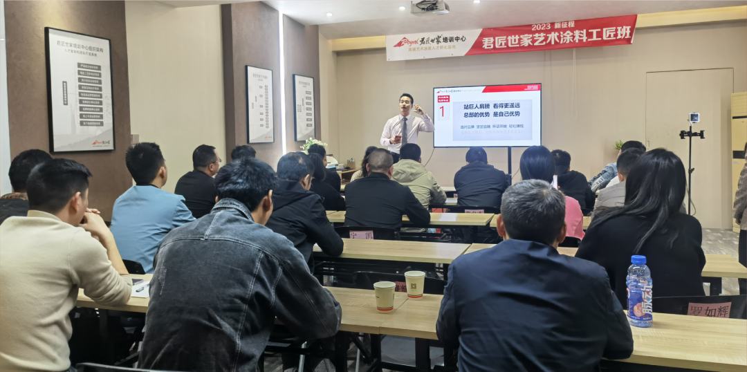 隨著疫情放開(kāi),經(jīng)濟(jì)恢復(fù),市場(chǎng)瞬息萬(wàn)變,科技飛速發(fā)展,藝術(shù)涂料行業(yè)市場(chǎng)火熱,逐漸成為家居裝飾市場(chǎng)新寵,涂料行業(yè)迎來(lái)新一輪加速推進(jìn)。藝術(shù)涂料因其完美的效果、優(yōu)異的性能、獨(dú)特的品味和個(gè)性,走進(jìn)了千萬(wàn)家庭的生活中!隨著工藝技術(shù)的不斷提升與完善,效果的多樣化,君匠世家藝術(shù)涂料為實(shí)現(xiàn)廣大用戶群體對(duì)藝術(shù)涂料工藝技能及經(jīng)營(yíng)技巧的掌握提升,2023年2月14日,在君匠世家藝術(shù)涂料培訓(xùn)中心開(kāi)設(shè)的工匠班開(kāi)班啦!