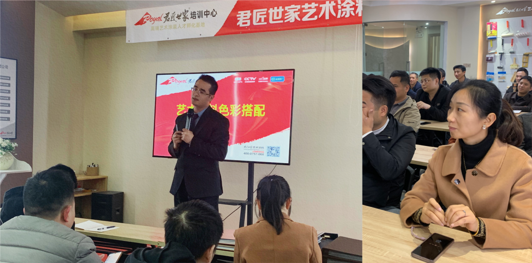 首日,9:20,在君匠世家藝術(shù)涂料總經(jīng)理李東明致辭中,表示對(duì)參加此次培訓(xùn)的人員的期望,祝愿學(xué)有所成并希望此次課程的順利開(kāi)展!9:35,由君匠世家藝術(shù)涂料培訓(xùn)中心 李柏明院長(zhǎng)向?qū)W員講解企業(yè)文化:君匠世家作為有深厚文化底蘊(yùn)的國(guó)際化品牌公司,致力于打造藝術(shù)壁材行業(yè)的國(guó)際品牌。