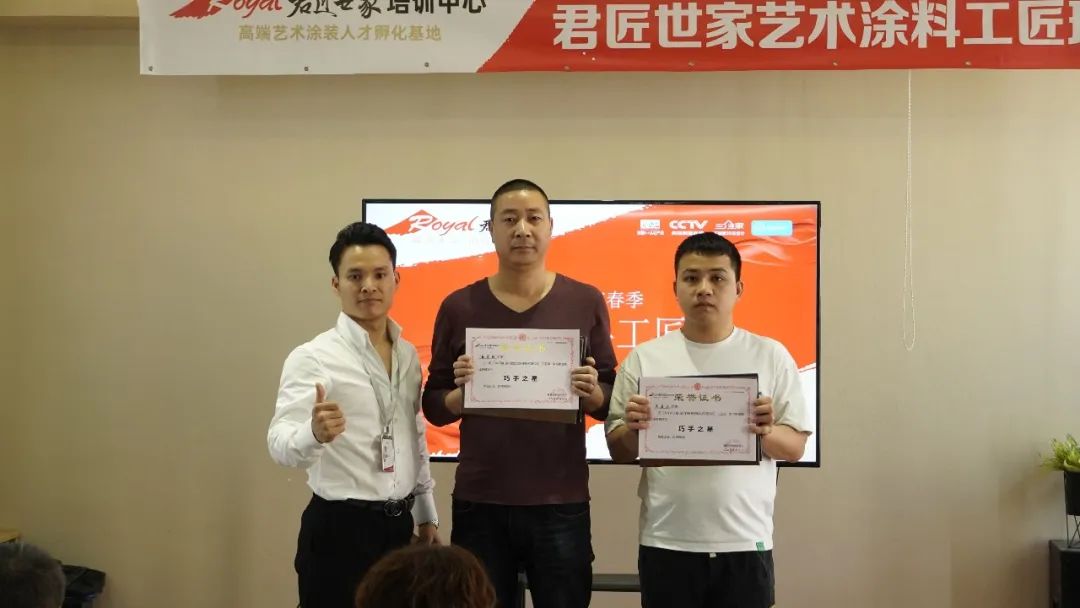 君匠世家藝術(shù)涂料工匠班“學(xué)習(xí)標(biāo)兵”獎(jiǎng)獲得者 李曉林 蔣忠志 陳鑫平