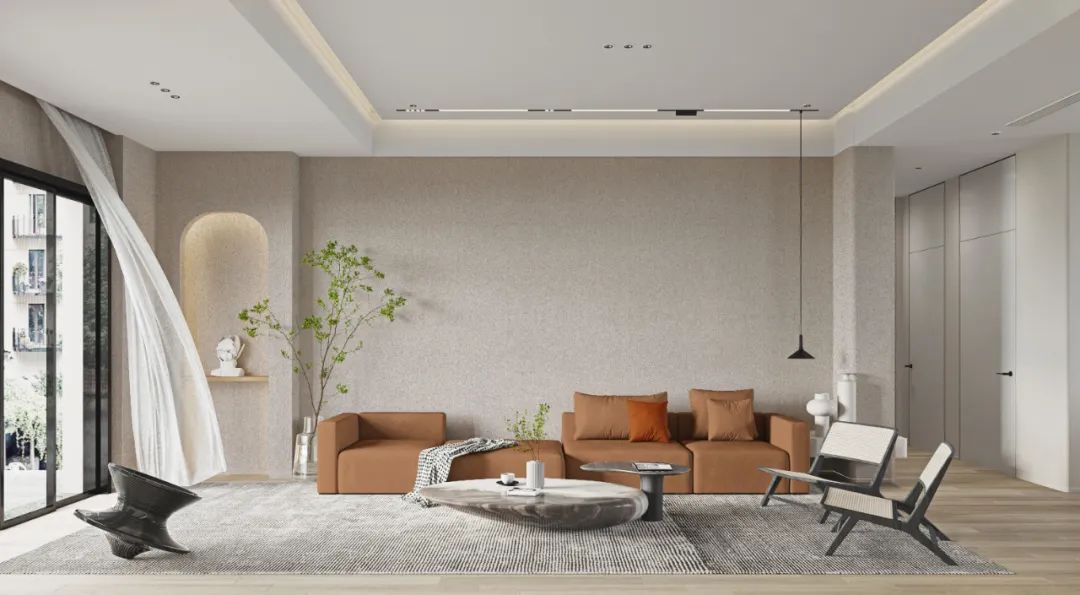 啞光細柔的砂絨質(zhì)感,自然灑落的細砂紋理,將舒適的砂絨觸感與色彩完美融合,營造一種低調(diào)奢華的高品質(zhì)生活空間,給您帶來視覺盛宴;其豐富的肌理體現(xiàn)出輕奢的質(zhì)感,能帶給您質(zhì)樸、舒適、高級的居住環(huán)境,以及有層次的視覺效果,增加了整體高雅、低調(diào)奢華的格調(diào)。