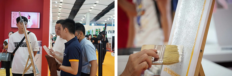 開展首日,君匠世家攜“東方美學(xué)國潮館”主題展館與全新爆品在廣交會(huì)展館B區(qū)9.3-A03閃耀亮相,現(xiàn)場(chǎng)人氣爆棚,熱潮涌動(dòng),淋漓盡致展現(xiàn)出君匠世家品牌魅力價(jià)值所在,為觀展客商帶來全新藝術(shù)涂料體驗(yàn)。