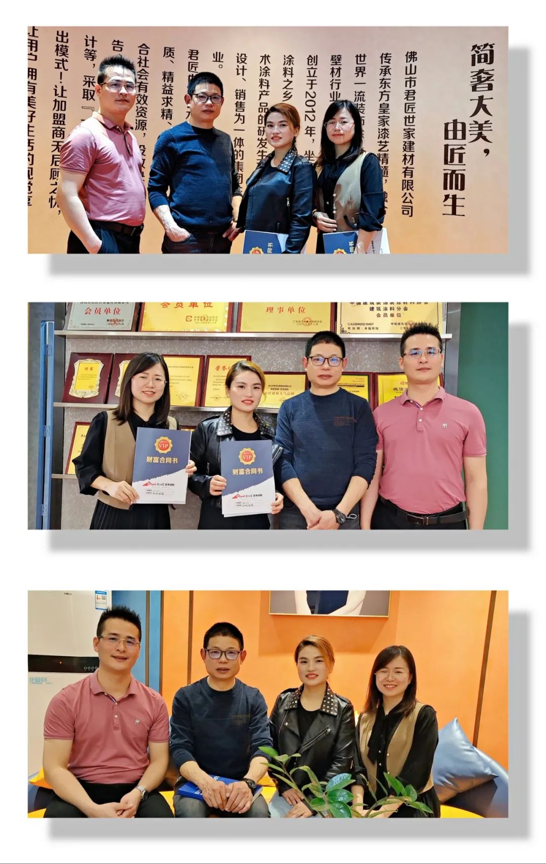 經(jīng)過(guò)多方面打聽(tīng)、考察驗(yàn)證,郭總了解到君匠世家藝術(shù)涂料作為藝術(shù)涂料的代表企業(yè),有完善的產(chǎn)品體系和培訓(xùn)體系,以及強(qiáng)大的后端服務(wù)能力。所以決定加入君匠大家庭,成為貴州黔東南丹寨區(qū)域經(jīng)銷商。